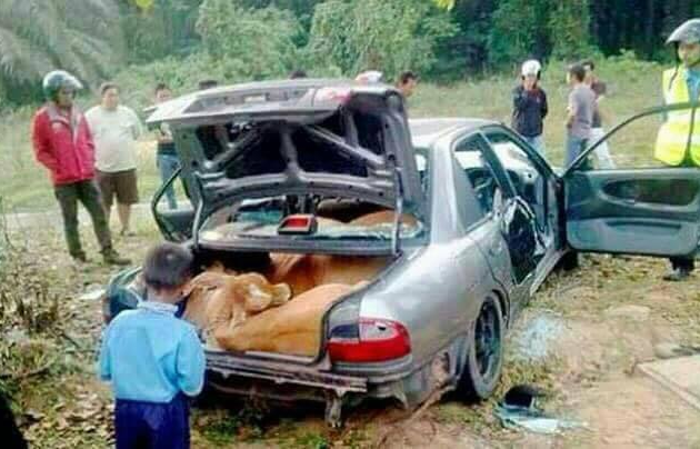 ทั้งนี้ ภาพดังกล่าวเป็นภาพเหตุการณ์ที่เกิดขึ้นเมื่อเดือนมกราคม 2557 โดยบีบีซีรายงานว่า เป็นเหตุการณ์การขโมยวัว 4 ตัว ซึ่งกลุ่มคนร้ายได้ขโมยวัวไปจากฟาร์มแห่งหนึ่งในเมืองปีนัง ประเทศมาเลเซีย และวางยาพวกมัน ทำให้วัวเหล่านี้อยู่ในอาการสะลึมสะลือ แล้วจับพวกมันยัดเข้าไปในรถเก๋ง ทั้งภายในรถและบริเวณกระโปรงหลังของรถ แต่ระหว่างที่ขับรถหนีไป ปรากฏว่ารถไม่สามารถรับน้ำหนักของวัว 4 ตัวได้ จึงทำให้รถพังกลางทาง ไม่สามารถไปต่อได้ กลุ่มคนร้ายจึงได้หลบหนีไป ทิ้งวัวทั้ง 4 ไว้ในรถ กระทั่งมีคนไปพบและแจ้งเจ้าหน้าที่